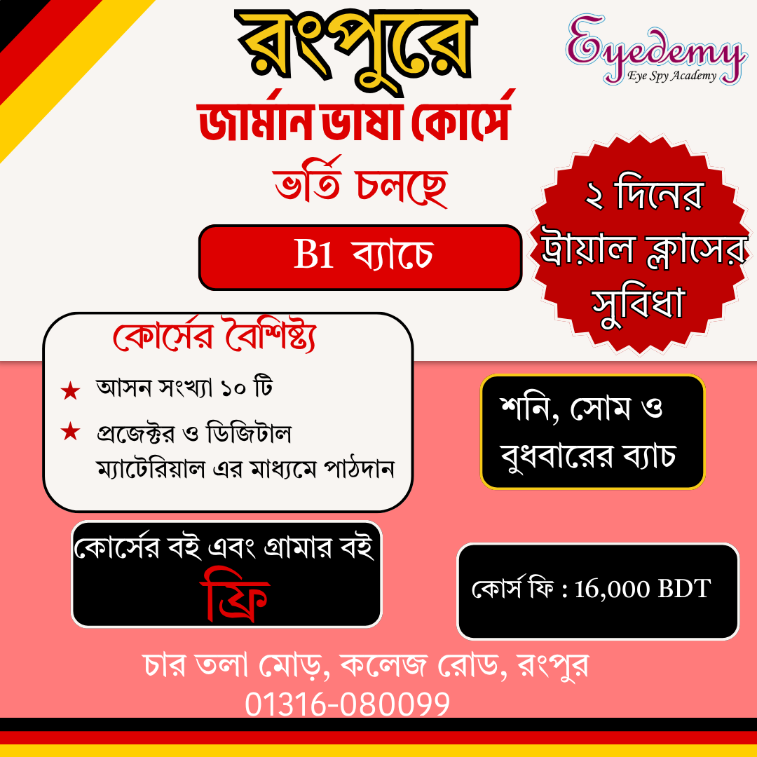 জার্মান ভাষায় দক্ষ হয়ে উঠুন: রংপুরে শুরু হচ্ছে প্রিমিয়াম B1 ব্যাচ! 🇩🇪